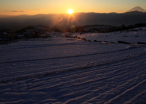 南アルプス市櫛形地区上市之瀬周辺には今も棚田が残され、農村風景が広がる。
